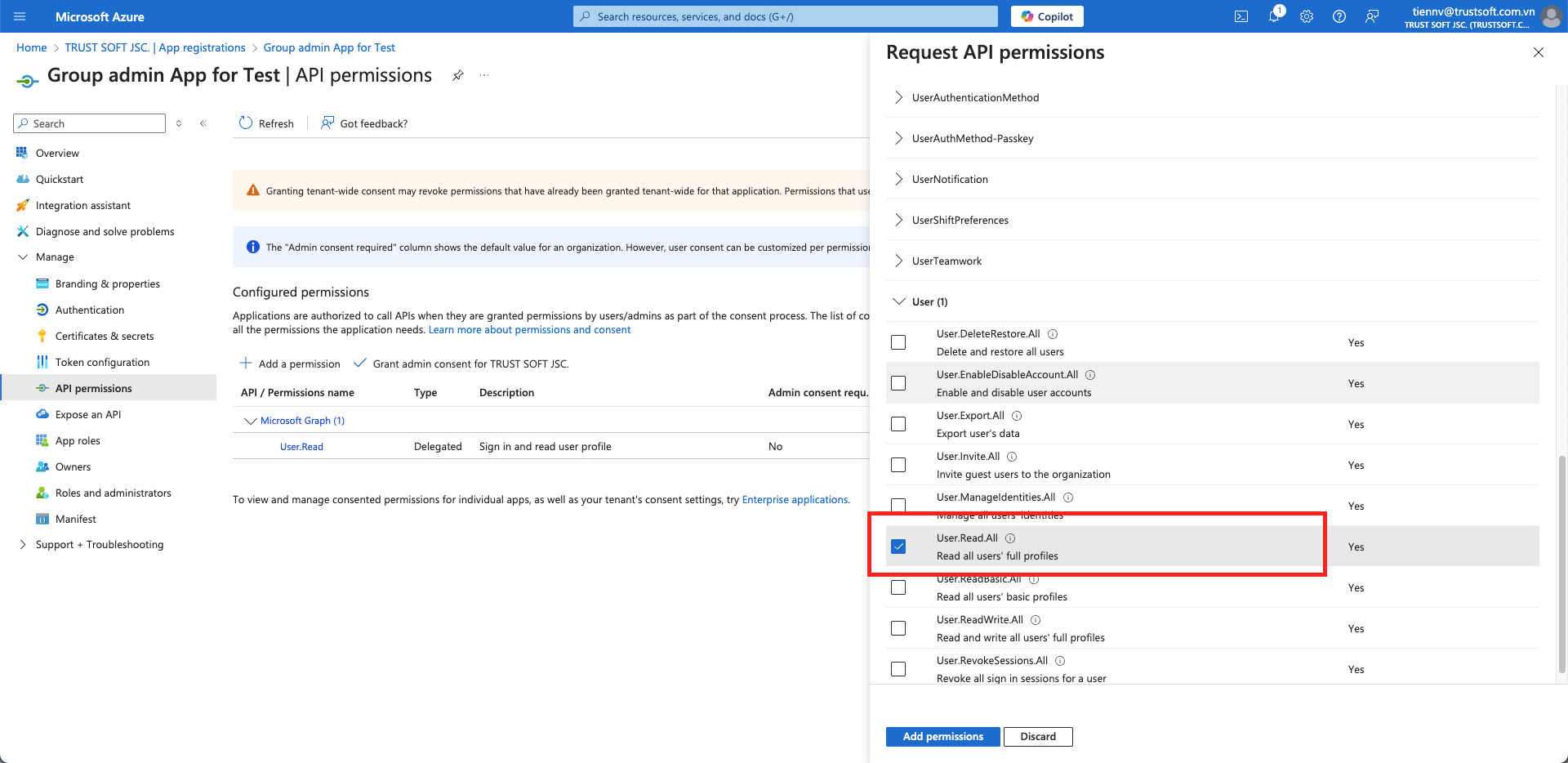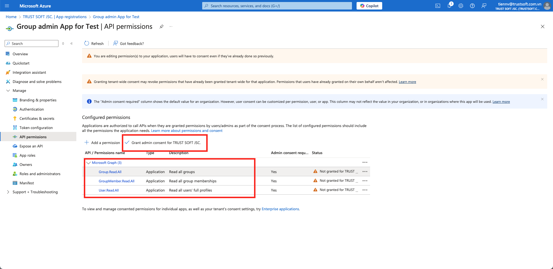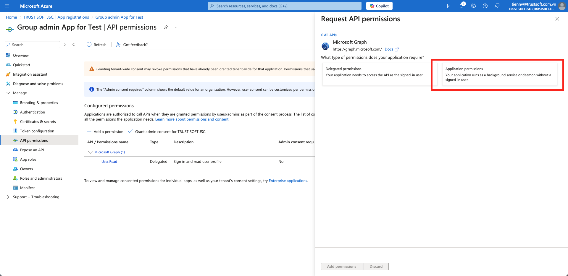 2. Grant Graph API Permission