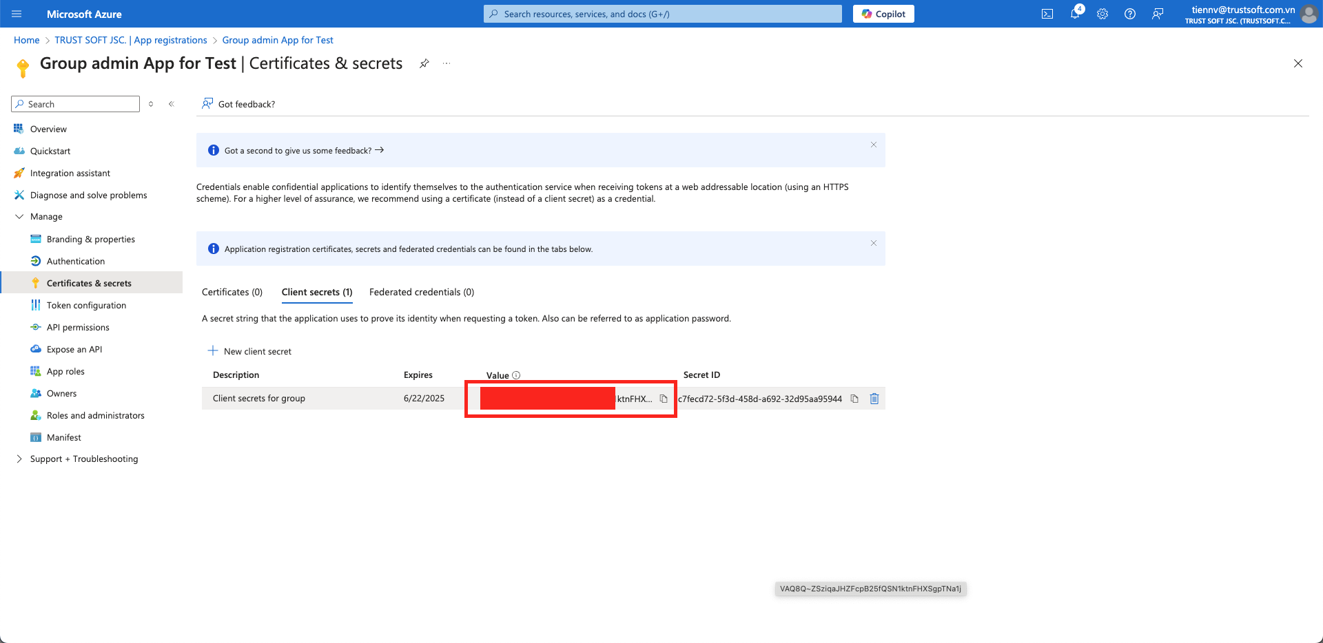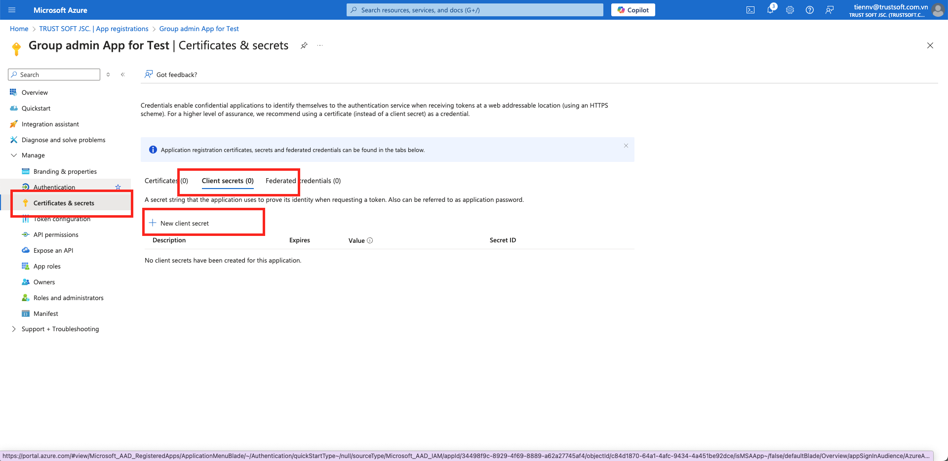 3. Create a Client Secret Key