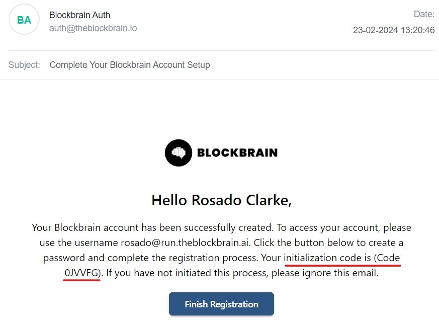 You'll receive an email with an activation link and initialization code to finish your account setup.