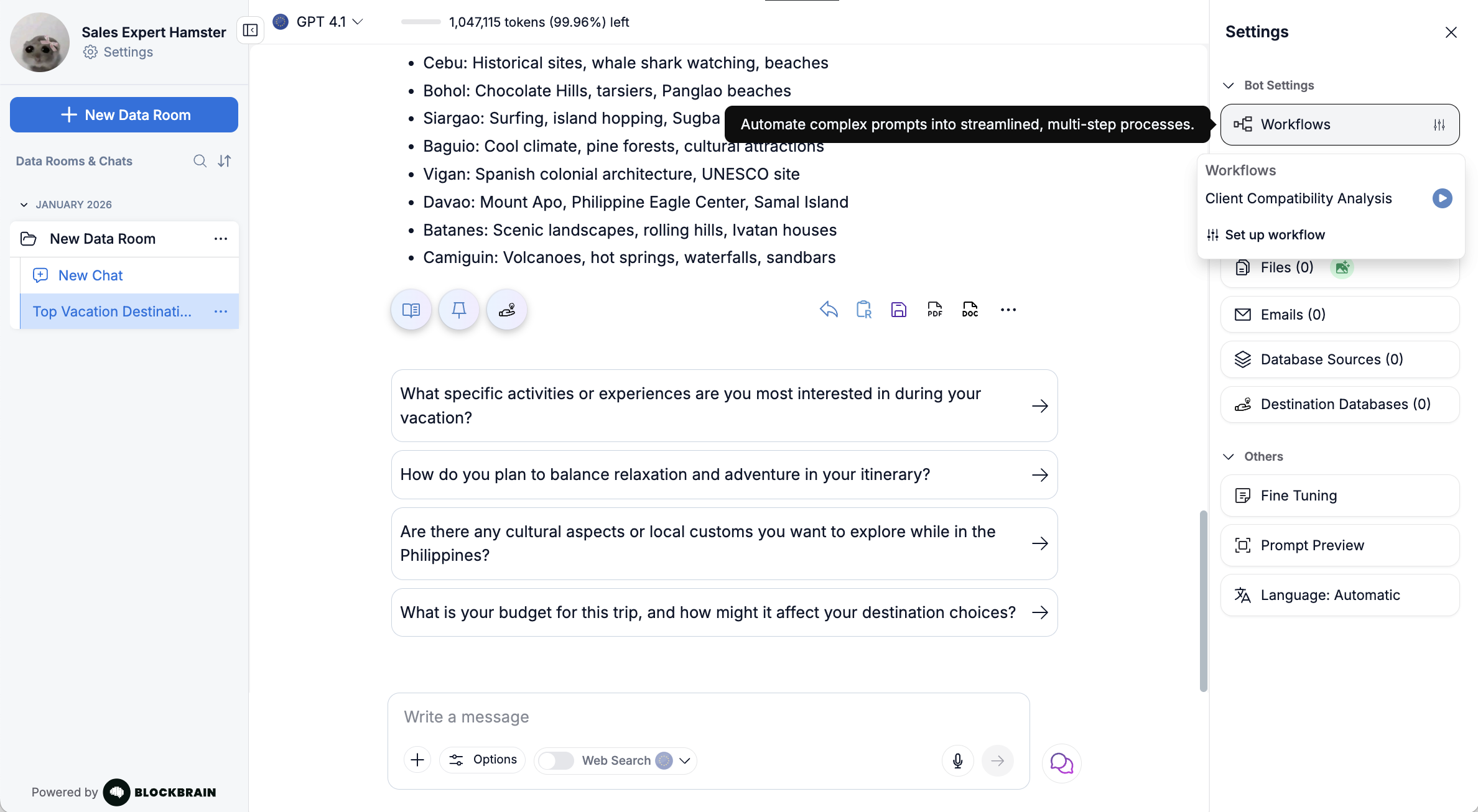 Workflows allow you to **automate multi-step prompts**, making complex interactions more structured and efficient. Unlike **Prompts**, which function as single-prompt shortcuts, **Workflows** guide the AI through a sequence of prompts to ensure a **more accurate and refined final response**.