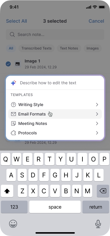 Free up time with the ultimate companion app for capturing knowledge. Take notes with voice, text or photos and leverage AI agent templates to easily transform your thoughts into structured documents.