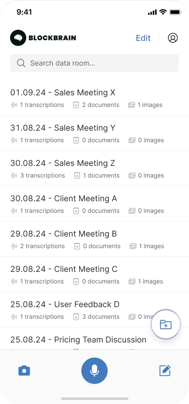Separating your documents for each conversation or meeting helps the AI understand relevant contexts better. Putting everything into one data room would cause the AI to mix up different topics.