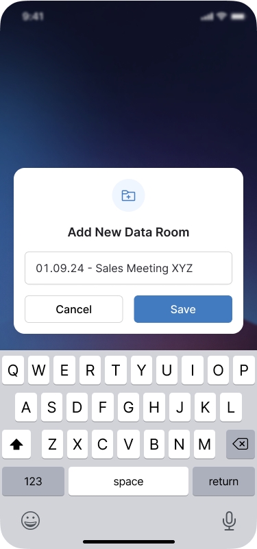 Tip: Name data rooms e.g. "Date - Client Name" for easy overview.